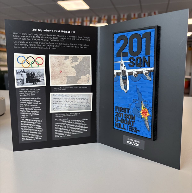 The first addition to a new series of patches from 201Sqn. Commemorating historical events from the extensive 201 history books, the first patch celebrates our first U-Boat kill. These are limited to only 201 patches, each being individually numbered.